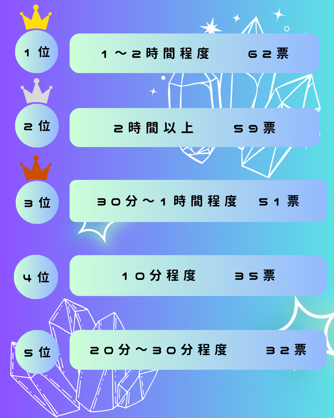 1〜2時間ほどゲームを楽しんでいる方が一番多いようです!